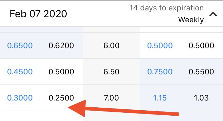 If I hold through expiration I will own 400 shares at 7.00, and since I strongly believe it will rebound, then that’s ok. Secondly, I can then begin selling calls against the 400 shares creating weekly income. Looking at next week, a $7 call is paying .25/share. This would create $100 income for the following week. That’s 3.5% ROC return in capital in 14 days. Then as the stock price moves up, I move the call strike to continue collecting premium. Looks good so far.